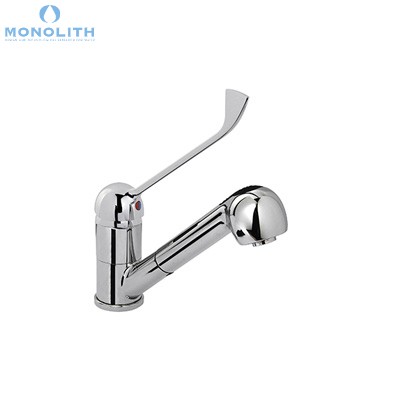 ONE HOLE MIXER WITH CHROMED CLINICAL LEVER, SWINGING SPOUT AND EXTRACTABLE SHOWER